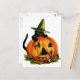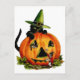 Vintage Wishes from a precious little reminder of Halloween past. This is a adorable image of a black cat hiding behind a jack-o-lantern while a mouse is pushing a door bell on the jack-o-lantern. This is a must have for the holidays. Click customize and add your own text.
