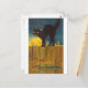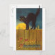 Vintage Black cat on a Fence Halloween Card