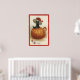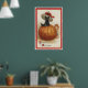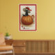 This image comes from the early 1920s and features a cat on a pumpkin wearing a Witch hat. Peeking from behind the pumpkin is a child who seems to know its best to stay out of sight.