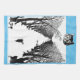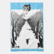 A tea towel for cat lovers featuring a pen and ink drawing of a black cat waving his wild tail as he walks through snowy woods. The freedom loving feline is the star of the children's story The Cat That Walks By Himself. Written and illustrated by Rudyard Kipling, it first featured in the 1902 edition of his Just So stories for children. Unlike the dog, the independent moggy refuses to be tamed by Man or Woman, announcing: 'I am not a friend and I am not a servant. I am the Cat who walks by himself and all places are alike to me.' Especially for Alice in Wonderland fans, I've added the smiling face of the Cheshire Cat character, grinning down on the lone cat. This illustration by John Tenniel is also in black and white, but I've added a dash of yellow to the eccentric cat's eyes.