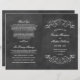 Decorative swirls and flourishes frame this elegant vintage inspired wedding ceremony program design. Rustic black chalkboard textured background look with white design. Personalize the custom text for your bridal party, ceremony information, and thank you message. Note: these text weight paper programs arrive flat and require folding to assemble.