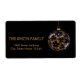 `C'est Noël Holiday retour adresse design. Cette caractéristique de design est une police manuscrite dorée avec des accents de cadre de défilement sur une planche noire, arrière - plan de style doux de la craie avec un look rustique texturé. Texte d'adresse de retour personnalisé. Étiquettes de adresse personnalisés pour tous vos envois.