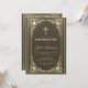 This elegant confirmation invitation with a vintage air has a vintage golden frame with elegant baroque gold decorations on a black leather-like background. The name of the boy is written in an elegant calligraphic script. All text can be personalized and has a golden colour similar to the gold decorations of the frame.