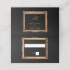 A black and gold themed wedding design elegantly framing the text with a vintage style gold frame. Elegant wedding place card design with modern elements. The modern setup of the typography gives it a distinct style. Matching wedding stationery items and other wedding invite formats are also available.