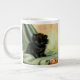 Coffee Mug featuring a lovable black kitten! The green eyed kitten sits on a blanket with a pink flower. A beautiful gift for cat lovers and Victorian art enthusiasts!