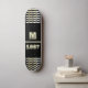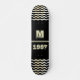 Vintage Black Monogram Year Number skateboard. The skateboard comes with a monogram and a year number and is perfect as a gift. Abstract waves are on each side of the skateboard.