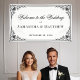 A black and white elegant wedding welcome banner with a vintage air.