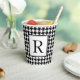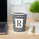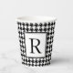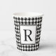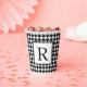 This custom vintage inspired paper cup features a black and white houndstooth pattern with a monogram initial in black on white to personalize.