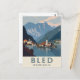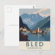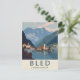 This vintage-style travel poster captures the stunning landscape of Bled, Yugoslavia, featuring the iconic island church and castle on the hillside. The artwork uses a simple, geometric style with a muted colour palette to evoke a classic, retro feel. This design is a perfect piece of nostalgia for anyone who remembers the region as part of Yugoslavia or for those who simply appreciate vintage travel art with a touch of history.