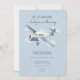 Up, up and away! A baby is on the way! Planning an airplane baby shower? Our blue airplane baby shower invitations are the perfect way to celebrate the new baby on the way with a vintage travel themed baby shower. Perfect for a baby shower for a boy, these blue airplane baby shower invites are the perfect choice.