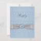 This chic and trendy blue and grey damask pattern with silver scrolls wedding RSVP card has a PRINTED silver ribbon with a PRINTED blue and silver faux engraved button medallion on it that matches the wedding invitation shown below. All text and the paper choice is customizable. ***PLEASE NOTE there are no raised elements on this invitation. Everything is printed flat. . I would NOT use any of the coloured papers (metallic champagne, gold, silver, felt, speckled) as they will ALL alter the colours of the design and photo. The linen paper will add a texture of thin lines that you may not want. The basic or recycled papers are a cheaper alternative if you are on a tighter budget. ***PLEASE NOTE that if you change the font or size of the font, it may alter how your invitation prints. It will print the way you see it on your monitor, so if you have alignment issues, or sizing problems, please contact me for help. I will not see your invitation once you order it, and Zazzle will NOT edit anything (typos, alignment, etc.). If you require assistance or would like any other matching items, please email your request to niteowlstudio@gmail.com.