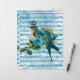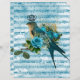 Unique design features vintage songbird illustration with crown and floral elements on a waterstained blue tint sheet music background