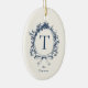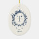 Vintage Blue Botanical Monogram Ceramic Ornament