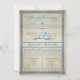This 5" x 7" wedding invitation has a vintage, old fashioned feel with old-timey letter design, including elaborate script elements, a decorative banner, stars and a swirly ampersand.
