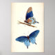 Beautiful vintage poster of two blue butterflies.
