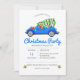 Vintage Blue Car and Tree Christmas Invitation