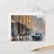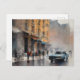 Vintage Blue Car in Foggy Cityscape Postcard