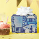 Cute blue vintage Christmas holiday village with snow.