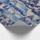 Vintage Blue Christmas Holiday Village Wrapping Paper