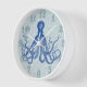 This beautiful antique octopus drawing* from the 19th Century has been recolored blue and placed on a pretty grey-blue distressed / grunge background with a faint anchor pattern. The result is an original clock to match your nautical and beach theme home decor. The clock numbers are done in a fancy, Victorian type font. The octopus has plenty of waving tentacles and would look pretty on the wall. See matching items and colour variations in our store!