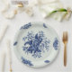 Paper plate with vintage blue pattern.
