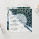 This lovely ornate wedding invitation features faded chevron wallpaper and a vintage fan made of peacock feathers. Edwardian or Victorian style!