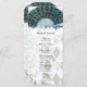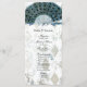 This lovely vintage style wedding program has an easy template that allows you to fill in the wedding party on one side, and the order of ceremony on the other. Click the customize button if you need to change anything. Blue peacock feather fan.