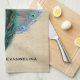 Vintage Peacock with blue chandelier, string lights, and feathers. Can be personalized with recipient’s name.