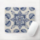 Vintage Blue White Geometric Flower Pattern Mouse Pad