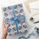 Vintage Blue White Geometric Flower Pattern Wrapping Paper
