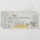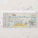 This vintage boarding pass Wedding Invitation is designed to look like a vintage airline ticket and decorated with an old turbo propeller airplane, palm trees and sunset. This Wedding Invitation is shown on the matte paper; however, the white felt paper is a great option to add some texture. The coordinating RSVP is available; however, if you prefer to have all the information on one card, another version of this invitation is available with the RSVP information on it, and can be found in the Vintage Destination Wedding Collection.