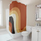 This groovy retro shower curtain features wavy lines in tan, brown, and burnt orange, reminiscent of the 70s and hippie lifestyle. Vintage bohemian bathroom decor with abstract curvy lines. Groove along with this fun earth tone design.