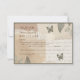 This wedding RSVP card comes in different sizes, shapes and papers. It is customizable with your dates, text, meals and monograms. It shows a harmonious blend of sage green eucalypthus greenery, butterflies, and torn paper with transparent vintage script. Earthy brown and beige tones set the tone for a boho chic response and makes this design complete. Hobinishop