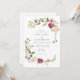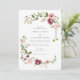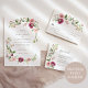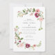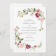 Wedding invitation featuring an elegant border of bohemian inspired flowers with poppies and burgundy and mauve flowers. Customize with your information.