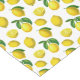 Table runner in a print of scattered lemons and leaves based on elements of vintage botanical art, digitally enhanced