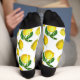 Socks in a print of scattered lemons and leaves based on elements of vintage botanical art, digitally enhanced