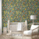 Transform your living space with this exquisite vintage wallpaper, inspired by the timeless designs of William Morris. This botanical masterpiece features a detailed pattern of lush green leaves intertwined with vibrant pomegranates and citrus fruits, accented by delicate floral motifs. The colour palette includes rich shades of olive green, lemon yellow, coral red, and subtle ivory, all set against a striking deep teal background. Perfect for adding a touch of elegance and sophistication to any room, this wallpaper seamlessly blends classic charm with contemporary style.