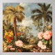 Lush tropical scene showcasing a variety of palm trees and colourful flowers. The setting evokes a sense of tranquillity and natural beauty.