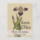 Vintage Botanicals Flower Art, Iris, for this Save the Date Wedding Announcement Postcard.