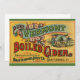 Vintage illustration product label art for Brattleboro Jelly Boiled Cider from Vermont. Similar to the old fashioned fruit crate labels. A farmer with some animals in a meadow on a farm and flowers on a tree branch.