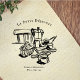 This vintage-style rubber stamp features a hand-drawn breakfast café scene with classic morning elements including a moka pot, coffee cup, bread, and simple tableware. The illustration is inspired by European café culture and quiet morning rituals, making it a versatile design for personal or small business use.