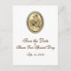 Beautiful vintage save the date card in gold print. Print on back is black