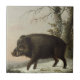 Vintage Brown Boar Hunting Painting, Wildlife Art Tile