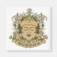 Buddha design with tan and brown floral background and flourishes and Buddhas face in the centre. Lower banner with BUDDHA text. Great vintage style Buddhism gifts!