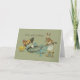 Victorian / Vintage Easter greeting card. Adorable bunny getting ready for Easter with an egg, a chick and a chicken! Easter, Glory Of Spring!