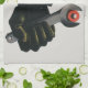 Vintage illustration business manufacture industry design featuring a giant hand of a blue collar machine worker holding a wrench and wearing an industrial strength glove. Could symbolize a strong mechanic working on military vehicles.