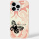 Vintage Black Butterfly paired with Vintage Peach Damask Personalized with your name Trendy iPhone Cases
