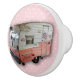 Vintage Pink Shasta Trailer/Camper on a pink polka dot background. These knobs will add that perfect finishing touch to your own vintage camper.
