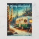 Vintage Camper Saguaro Cactus Christmas Desert Postcard