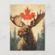 This impressive vintage elk illustration with the Canadian maple leaf in the background captures the majestic beauty of Canada. The moose, a symbol of strength and freedom, is in the foreground, while a shady landscape reflects the quiet wilderness. Perfect for nature lovers and Canada fans, this artwork brings a piece of Canadian culture and unspoiled nature to your home.